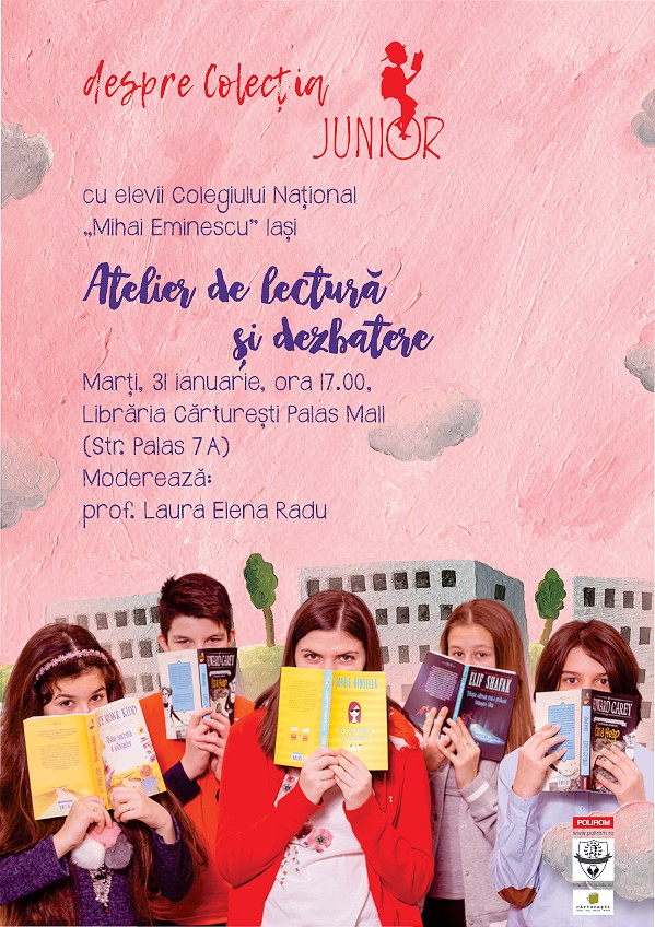 Marți, 31 ianuarie, la ora 17.00, la Librăria Cărturești din Palas Mall Iași (Str. Palas 7 A), va avea loc un atelier de lectură și dezbatere dedicat celei mai recente colecții lansate de Editura Polirom, „Junior”, proiect editorial ce se adresează atît copiilor, cît și adolescenților.