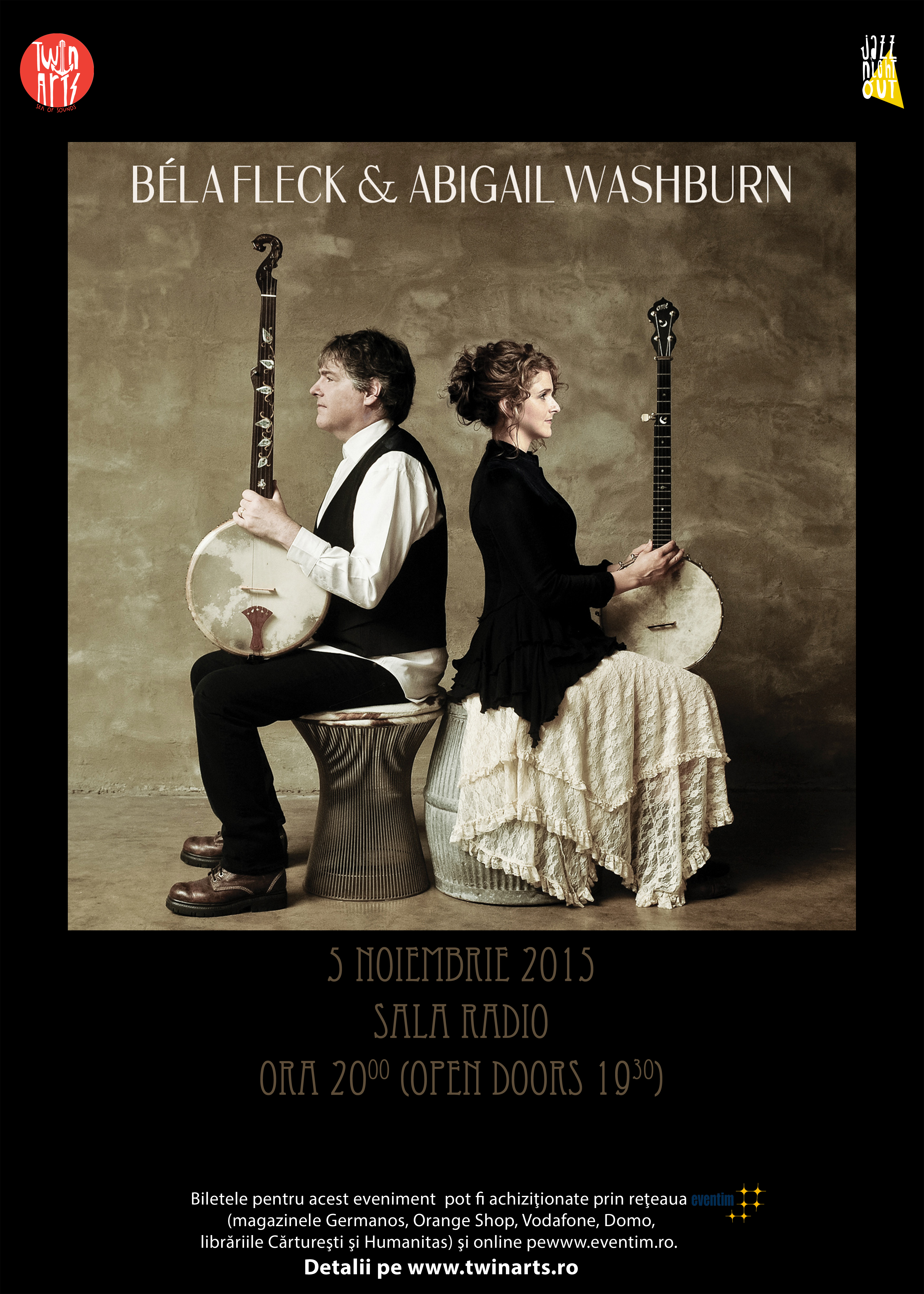 Concertul Béla Fleck & Abigail Washburn este un eveniment Jazz Night Out, prezentat de Twin Arts pe 5 Noiembrie 2015, ora 20.00 la Sala Radio.