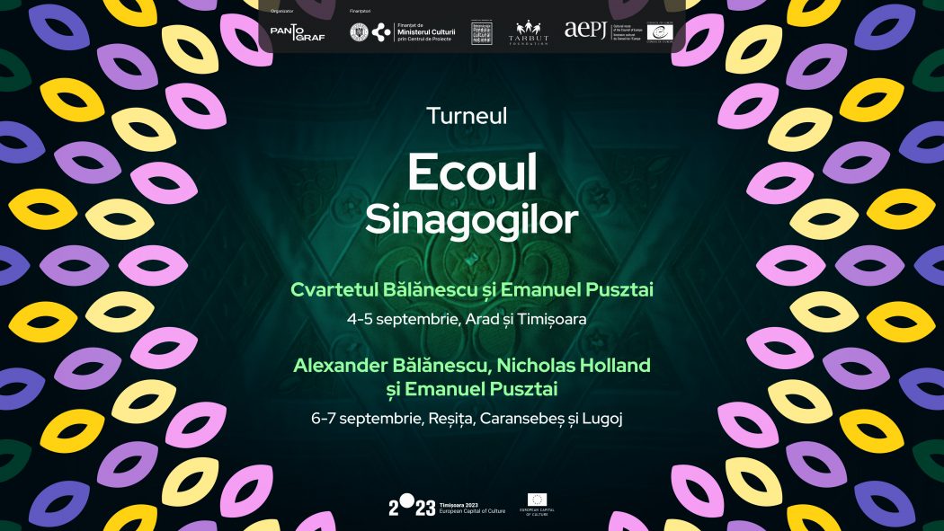 Asociația Pantograf continuă să aducă în prim-plan poveștile și emoțiile care însoțesc sinagogile prin cel mai nou proiect – Ecoul Sinagogilor. În perioada 4-7 septembrie, în sinagogile din Arad, Timișoara, Reșița, Caransebeș și Lugoj vor putea fi ascultate în primă audiție lucrări muzicale compuse de Alexander Bălănescu în colaborare cu prim-cantorul cultului mozaic Emanuel Pusztai.