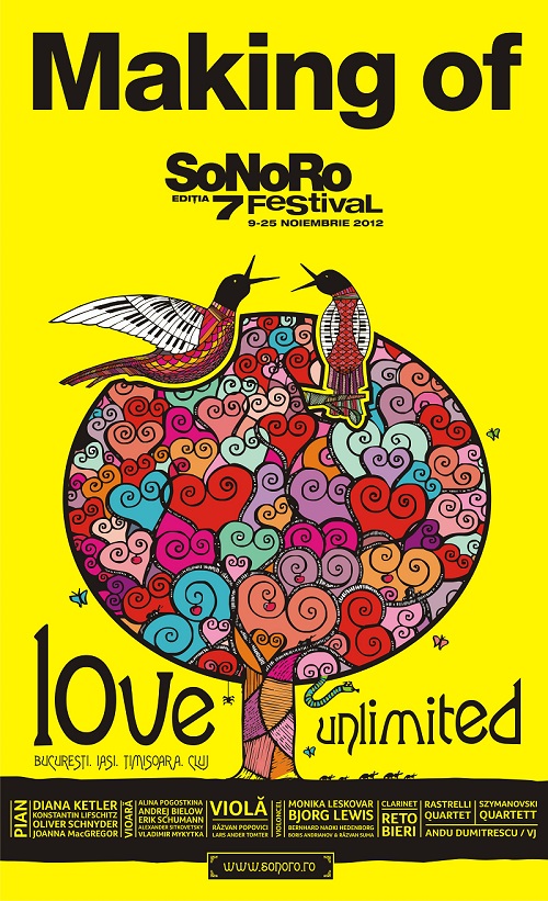 În 2012, ediţia a VII-a a Festivalului Internațional de Muzică de Cameră SoNoRo s-a desfășurat sub tema „Love unlimited”. Documentarul „Making of SoNoRo 2012” creionează voiajul intim în lumea muzicii de cameră prin felul în care, de-a lungul timpului, au fost coagulate forțe și oameni în jurul acestei aventuri culturale, devenită un fenomen artistic contemporan.