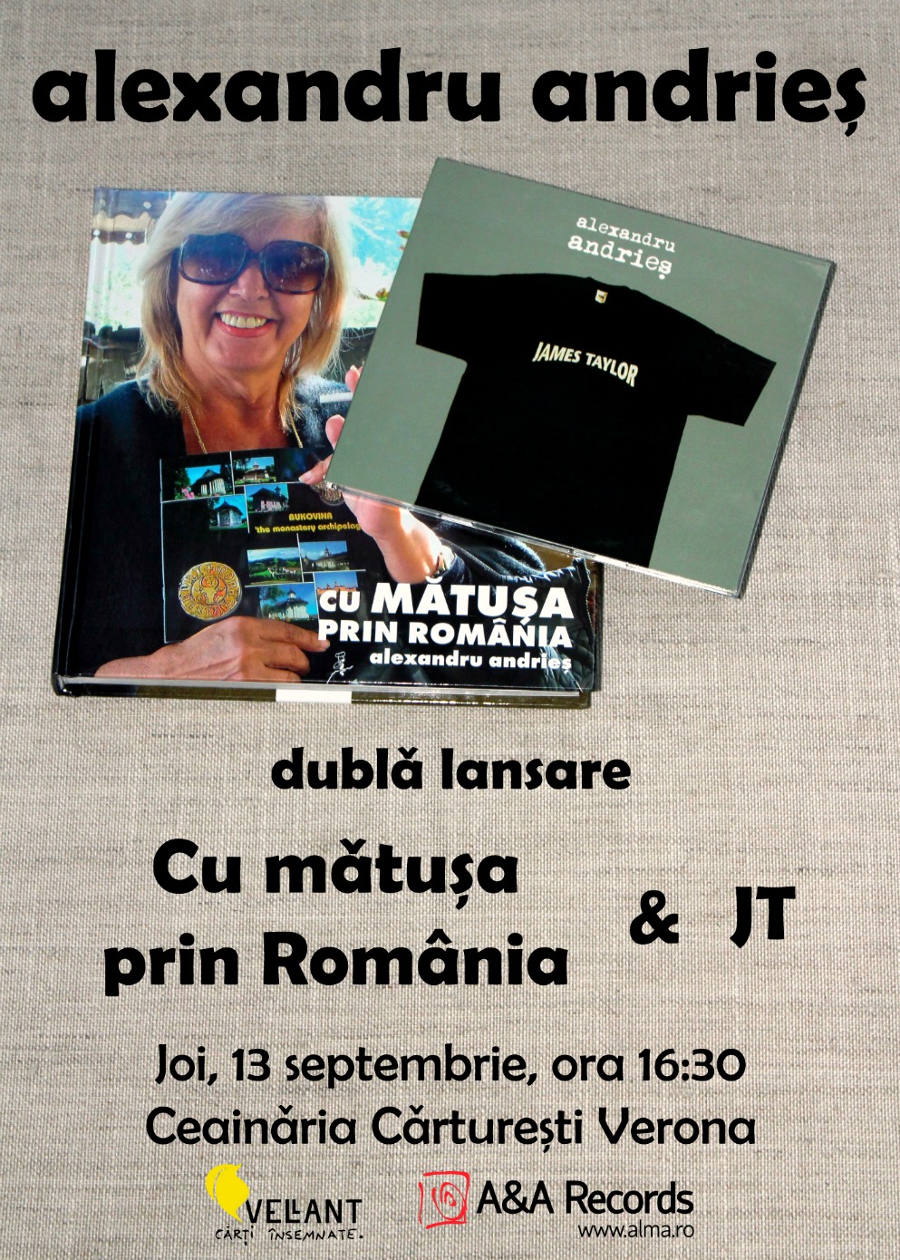Joi, 13 septembrie 2012, e o zi norocoasă pentru fanii lui Alexandru Andrieş. Artistul a pregătit o dublă lansare în Ceainăria Cărtureşti Verona, de la ora 16:30: albumul de călătorie Cu mătuşa prin România, publicat la Editura Vellant, şi discul JT, produs de casa de discuri A&A Records.