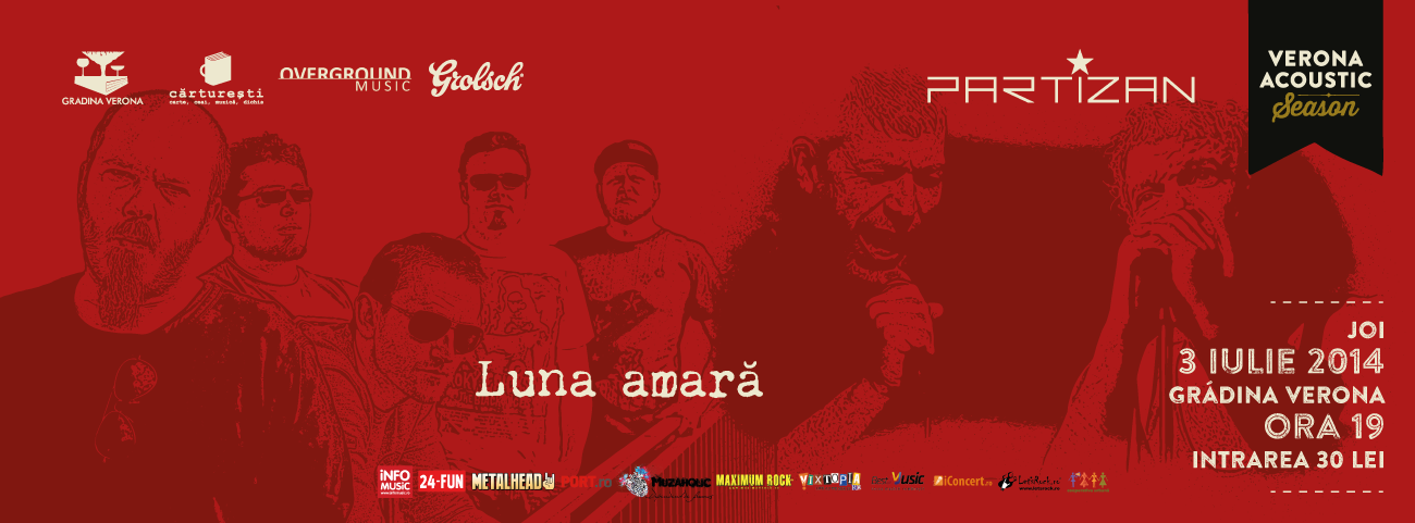 Seria de concerte Verona Acoustic Season de pe timpul verii continuă la Grădina Verona din București joi, 3 iulie, de la ora 19:00! De data aceasta vor urca pe scenă trupele Partizan (în formulă acustică Artan și Suedezu’) și Luna Amară!
