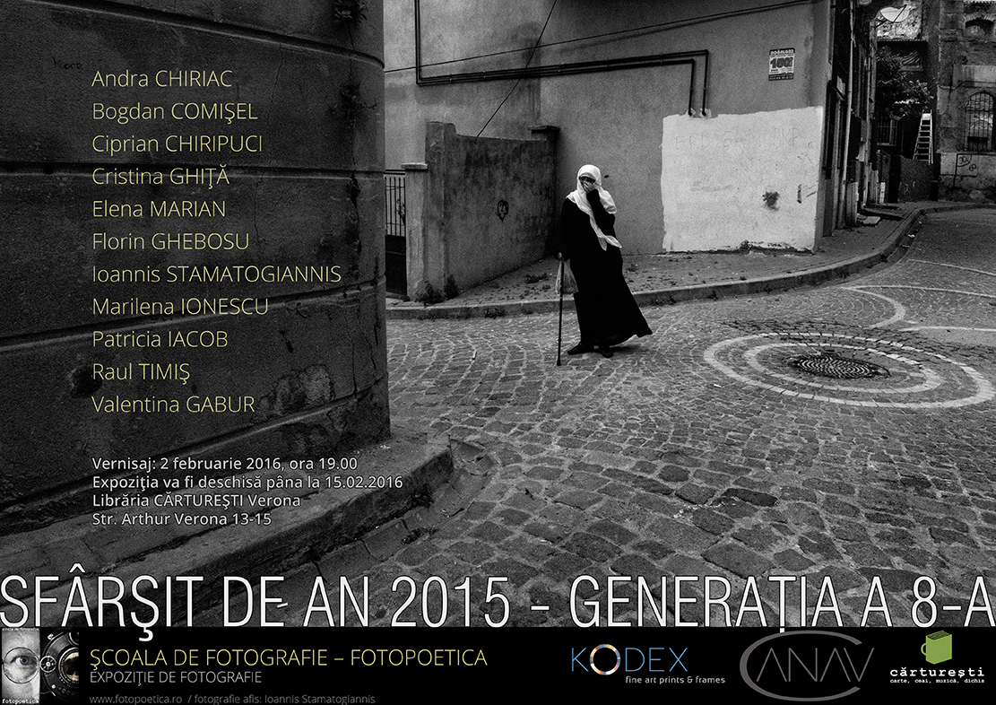 Așadar, vă invităm cu bucurie la cea de-a opta expoziție de sfârșit de an fotopoetic, anul celei mai proaspete generații de Fotopoeți, pe 2 februarie, orele 19 trecute-fix, în cunoscutul spațiu oferit de Cărturești.