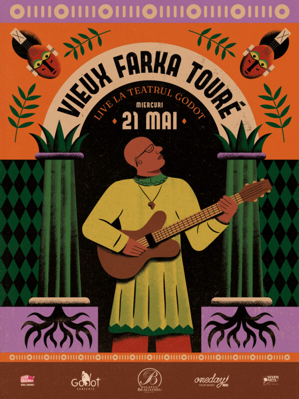 Concertul Vieux Farka Touré de la București este prezentat de OneDay în parteneriat cu: Teatrul Godot, Palatul Bragadiru, 7 Arts Agency. Parteneri media: Radio Guerrilla, Cocor Media-fațada, Zile și Nopți.