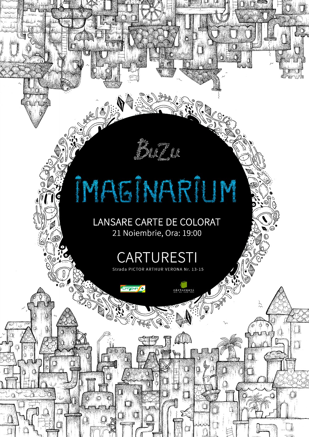Luni, 21 noiembrie 2016, ora 19.00 vă invităm la librăria Cărtureşti Verona (Str. Pictor Arthur Verona nr. 13-15, lângă cinema „Patria”) la evenimentul de lansare a unui original album de grafică – ”IMAGINARIUM” de Ana Ştefania Andronic (BUZU) – carte de ilistrație și colorat pentru toate vârstele, apărută la Editura ALICAT.