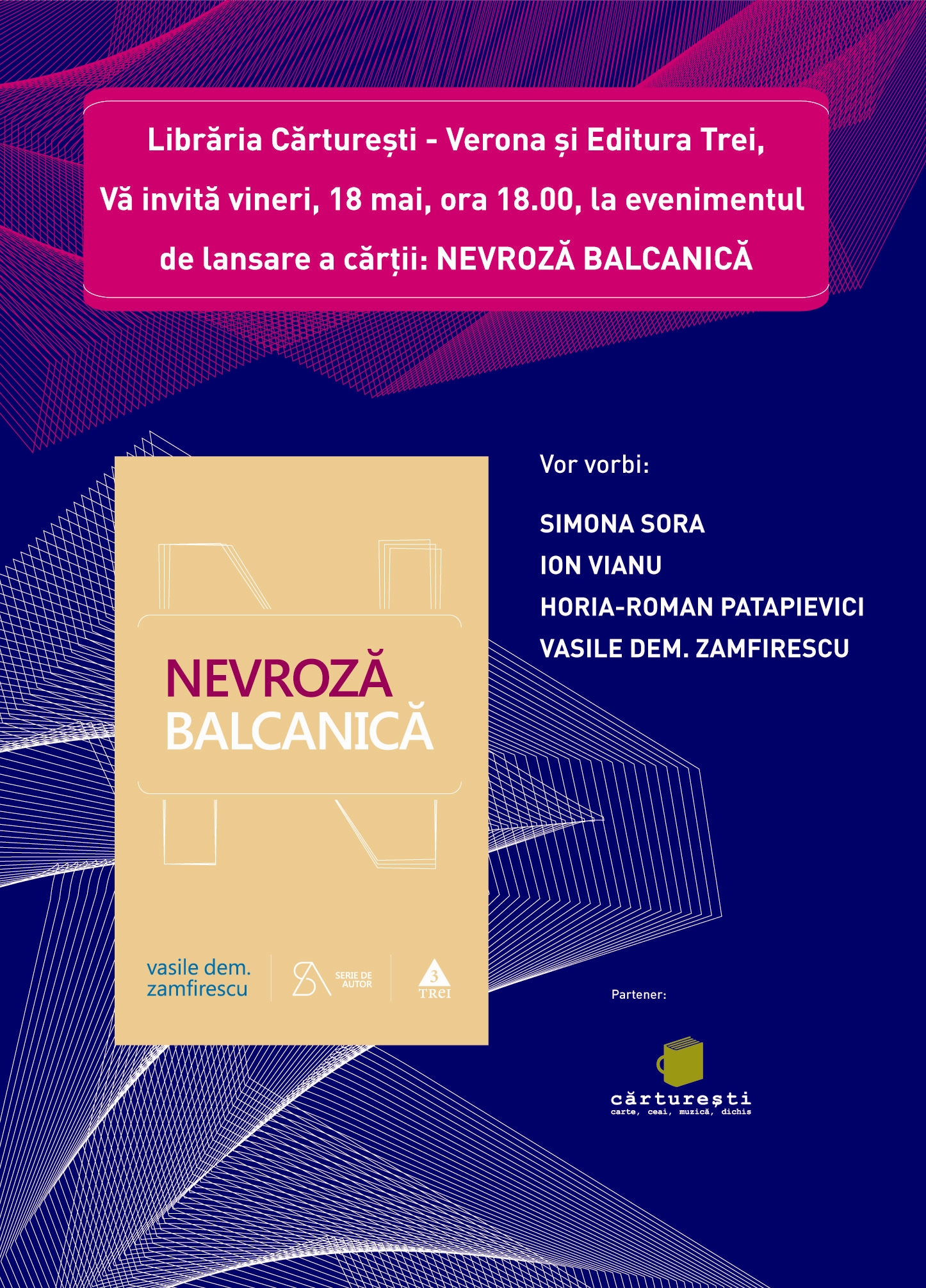 Cărturești şi Editura Trei vă invită vineri, 18 mai, ora 18.00, în librăria Cărturești – Verona, la evenimentul de lansare a cărţii: NEVROZA BALCANICĂ.