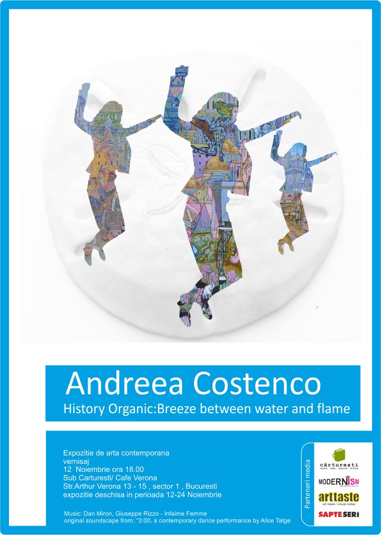 Luni, 12 noiembrie, de la ora 18.00, la Cărturești Verona va avea loc vernisajul expoziției „History Organic: Breeze Between Water and Flame” de Andreea Costenco. Vernisajul se va bucura de timbrul sonor realizat de Giuseppe Rizzo și Dan Miron, iar samovoarul cu ceai tomnatic va fi oferit de Cărturești.