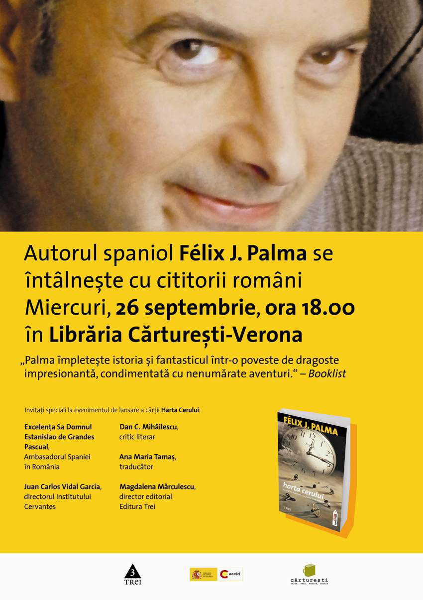 Editura Trei, cu sprijinul Ambasadei Spaniei în România, vă invită la evenimentul de lansare a cărţii Harta cerului, scrisă de Felix J. Palma.