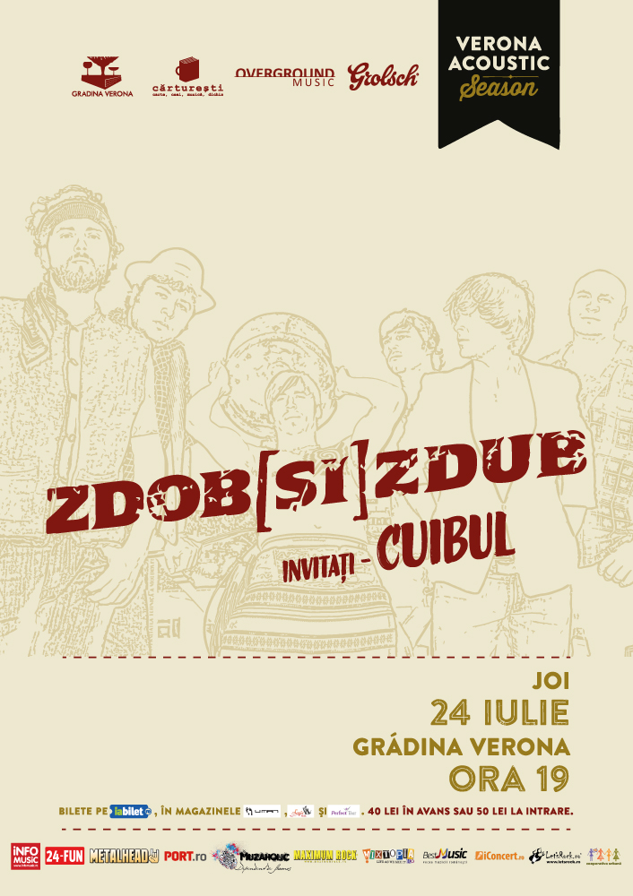 O trupă care nu mai are nevoie de nici o prezentare, Zdob și Zdub au în acest an o vară încărcată; vor cânta la unele din cele mai importante festivaluri din România, dar vor călători și prin Rusia, Ucraina și Lituania. E o bucurie astfel să-i avem pe cei șase alături de noi la Grădina Verona – așteptați-vă la un show complet, inegalabil, atât cu noutăți din repertoriul formației cât și cu piese-cheie din istoria de 20 de ani Zdob și Zdub!