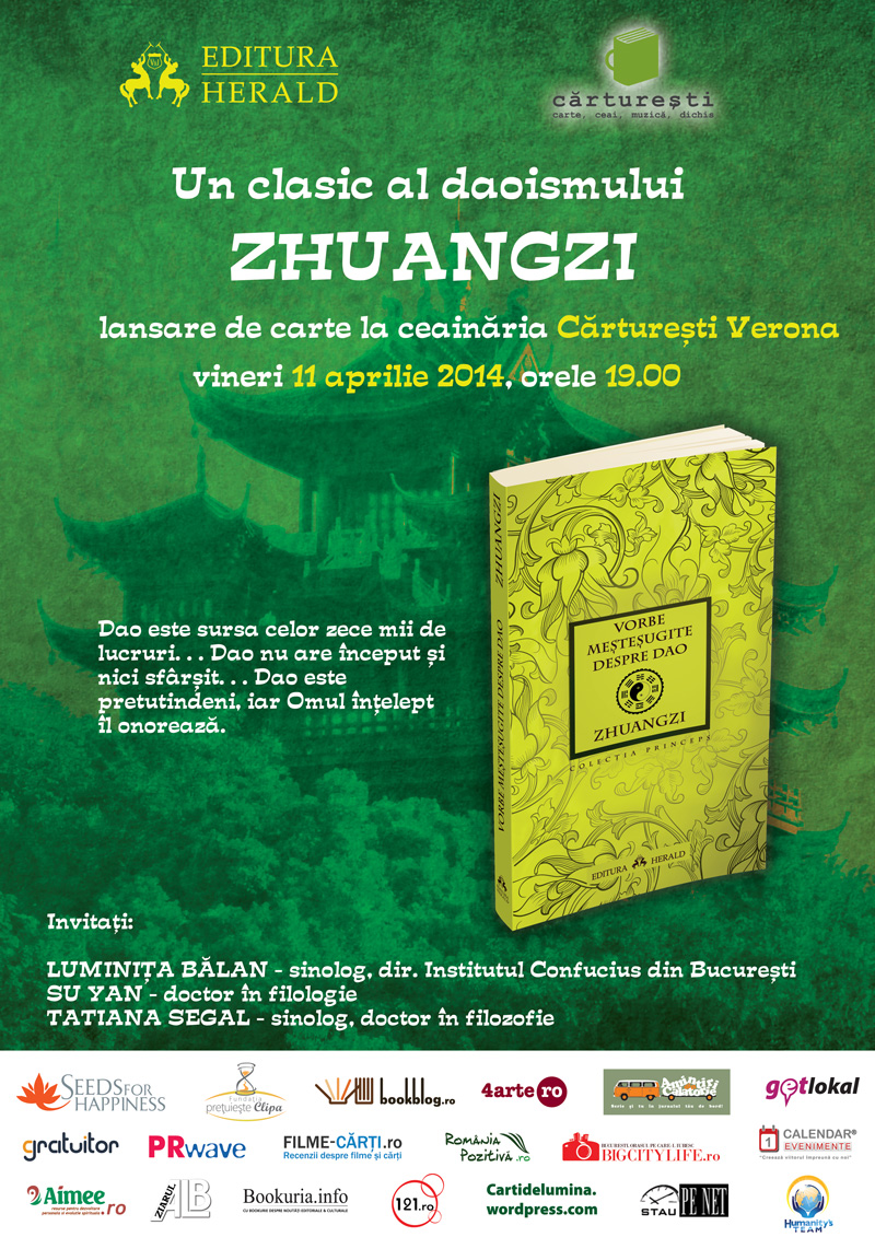 ZHUANGZI lansare de carte marca Herald, la ceainăria Librariei Cărtureşti Verona vineri 11 aprilie 2014, orele 19.00