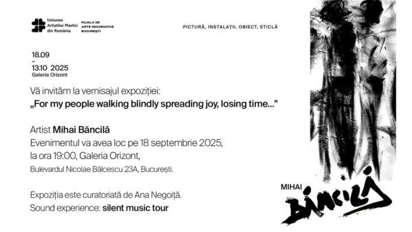 Expoziția„For my people walking blindly spreading joy, losing time…” a artistului Mihai Băncilă are vernisajul pe 18 septembrie