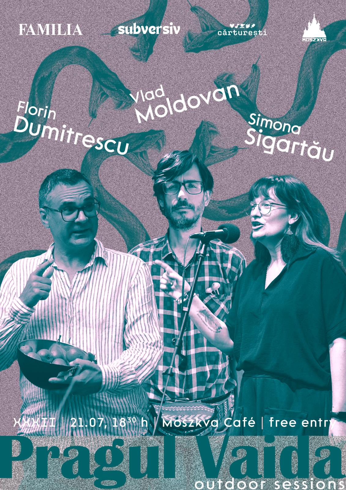 Vlad Moldovan, Florin Dumitrescu și Simona Sigartău, trei dintre cei mai în formă poeți-performeri români contemporani, revin la Pragul Vaida!