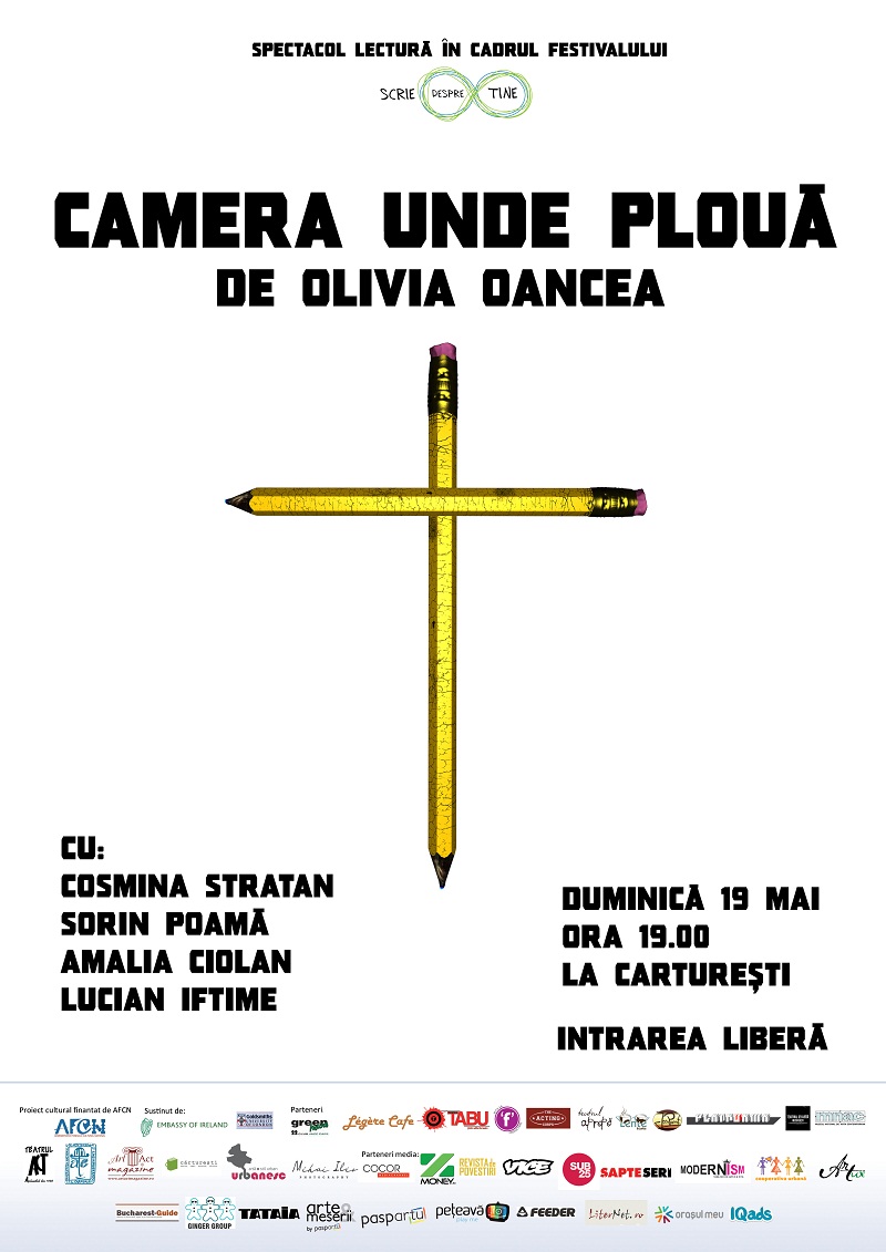 Festivalul de Teatru Scrie despre Tine este un proiect cultural finanţat de AFCN şi realizat sub înaltul patronaj al Ambasadei Irlandei la Bucureşti.