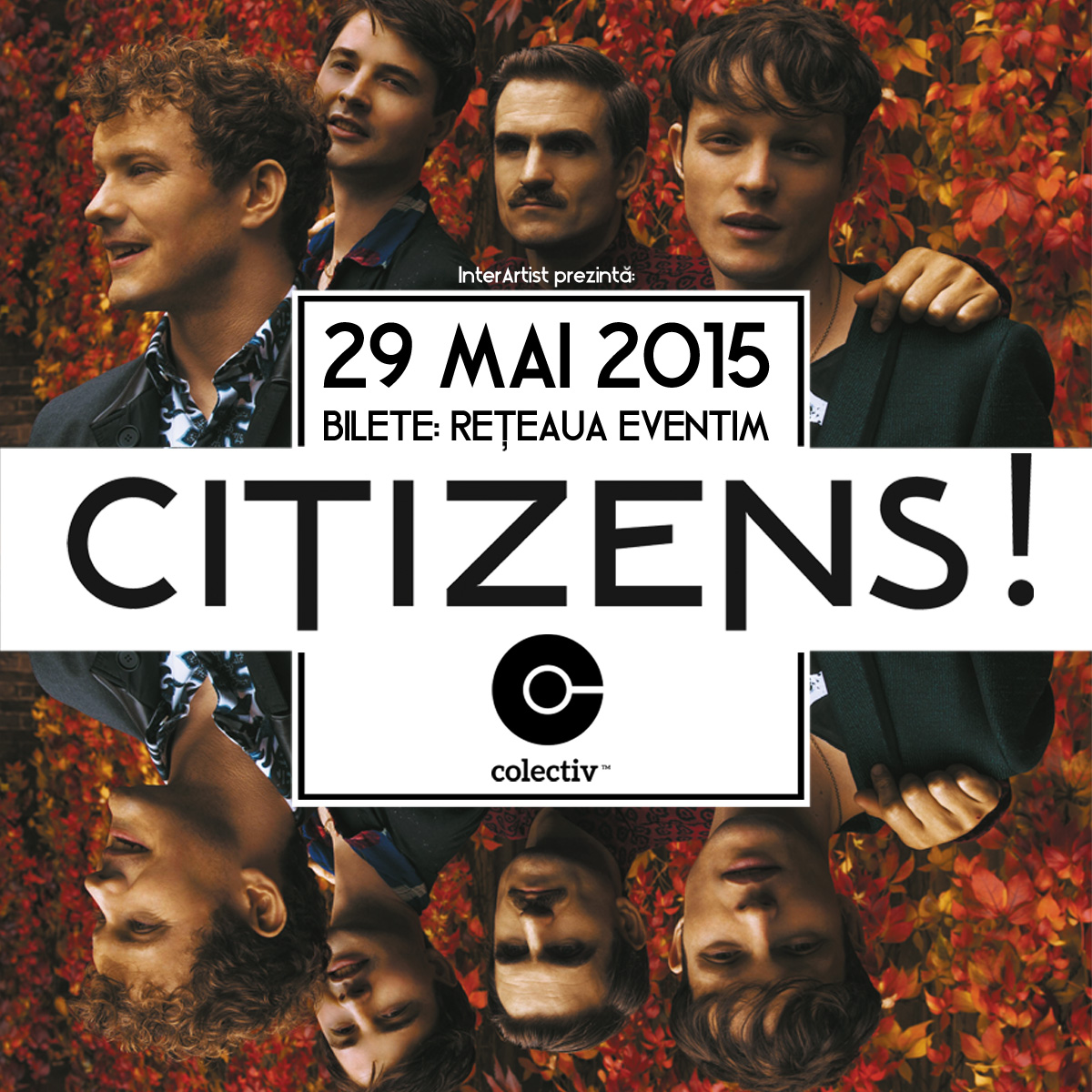 Noi vă invităm pe toți la petrecerea semnată Citizens! de la Bucureşti, ce va avea loc vineri 29 mai 2015, în clubul Colectiv (Str. Tăbăcarilor nr. 7, Sector 4, fosta fabrică Pionierul). Biletele la concert au prețul de 55 lei. În seara evenimentului, la intrarea în club, biletele vor costa 65 lei. Biletele sunt disponibile în rețeaua Eventim: online la http://bit.ly/citizens-colectiv .